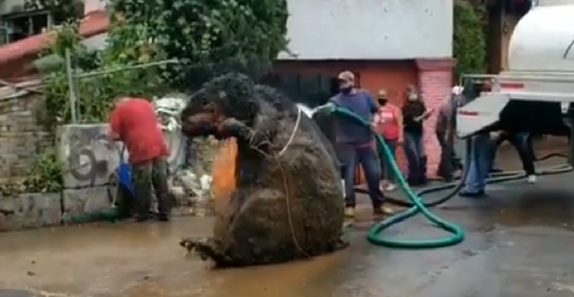 Semejante animalote de metro y medio de altura apareció en la alcaldía Magdalena Contreras cuando personal de Protección Civil acudió a retirar toneladas de basura que impedían el paso de un arroyo, poniendo en riesgo a todos los habitantes que viven en las zonas cercanas por eso de las inundaciones.