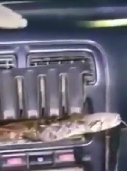 Por ahora se cree que la serpiente (que no está nada pequeña porque mide unos 2 metros), se metió por la zona del motor para esconderse en un sitio cálido. Pero como verás en el video, la decubrieron y la sacaron del lado del tablero del taxi.