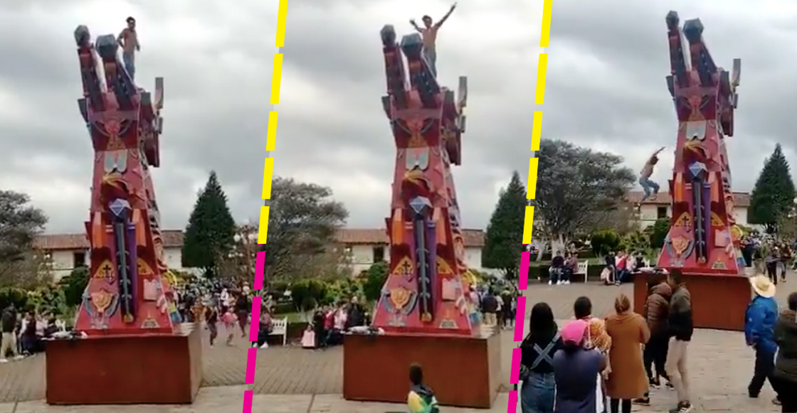 Sí, no les mentimos, en el video que ya se comparte en Twitter y Facebook se puede ver como este hombre está parado justo en la cima de una escultura de una plaza pública de Zacatlán, por lo que llama la atención de varios visitantes y locales que solo comienzan a preguntarse dónde rayos estaban las autoridades.