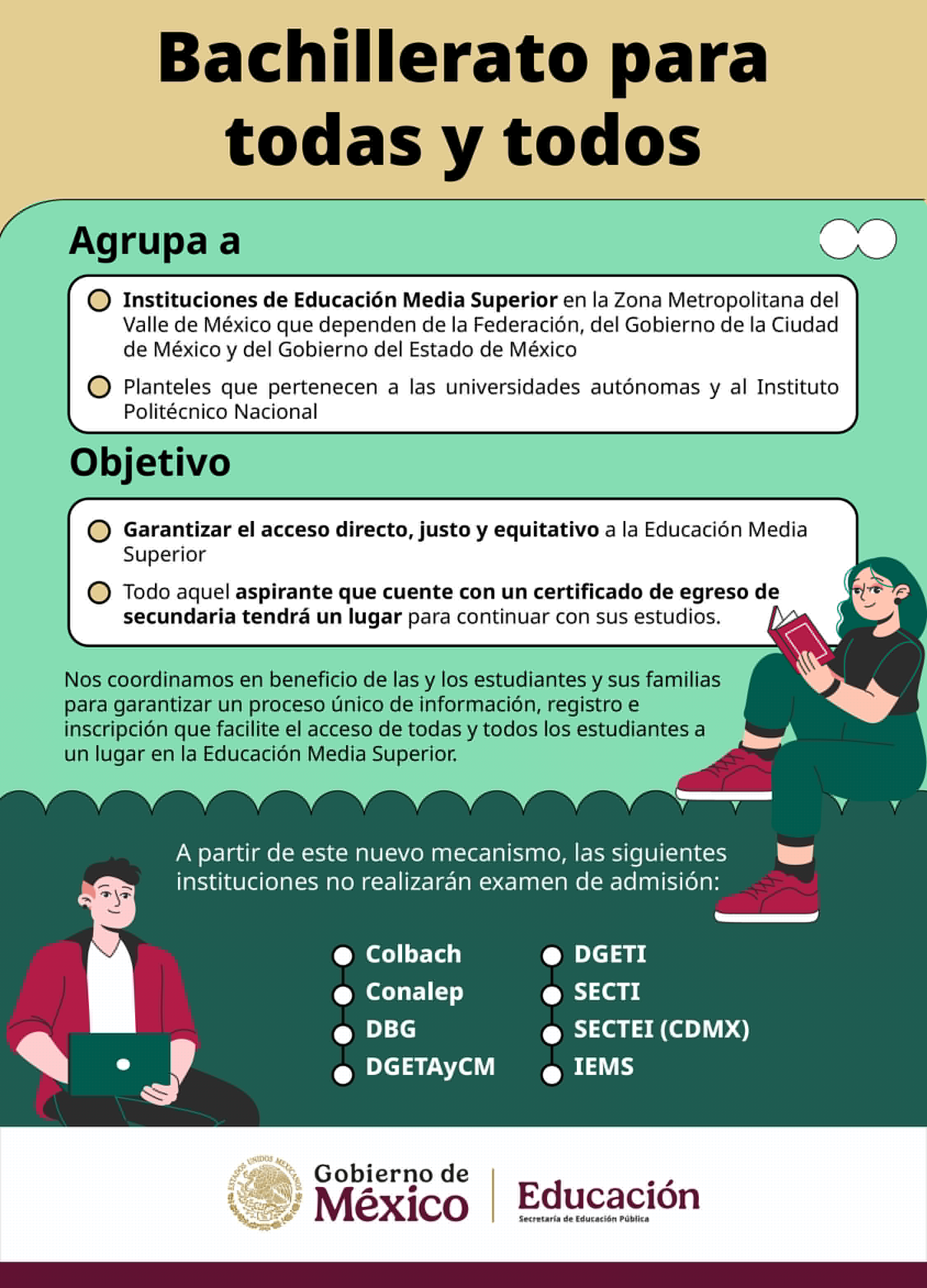 Atención, aquellos estudiantes interesados en ingresar a alguna escuela perteneciente a Colbach, Conalep, DBG, DGETAyCM, DGETI, SECTI, SECTEI (CDMX) e IEMS, ya no tendrán que presentar ningún examen de admisión para entrar. El único requisito que deben cumplir es obtener su certificado de secundaria.