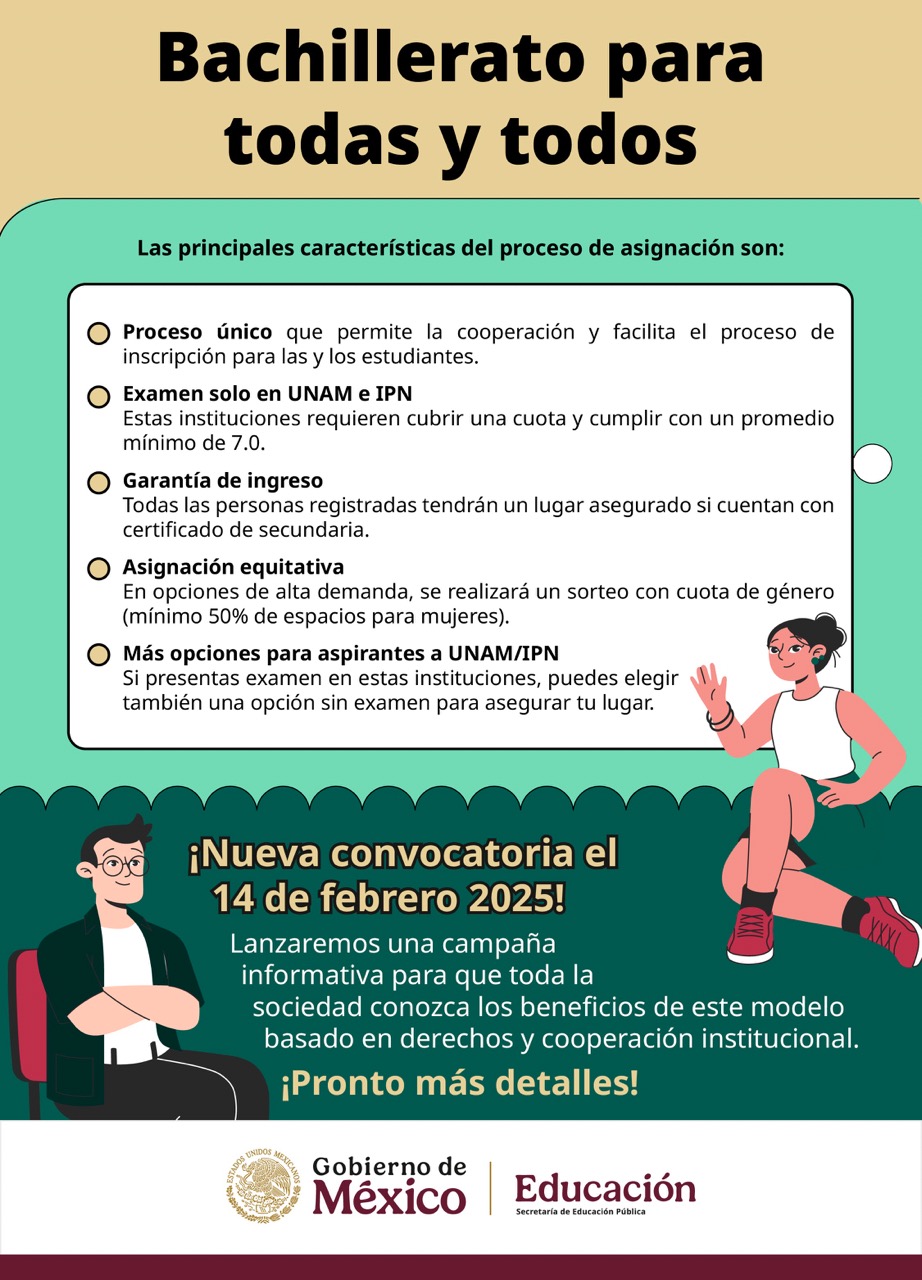 “El 14 de febrero se publica una convocatoria para todas y todos los estudiantes de tercero de secundaria. Primero les decimos que ya tienen un lugar. A principios de marzo, todos y todas se van a inscribir en una plataforma. En esa plataforma los jóvenes van a decidir cuáles son sus 10 prioridades (…) en mayo, cuando terminen sus estudios, ahí tienen ya su lugar” explicó Mario Delgado Carrillo, titular de la SEP.