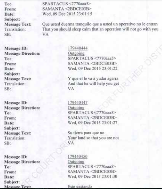 Estos mensajes son parte de una conversación entre alguien identificado como “Spartacus” y “Samanta”, en donde uno de ellos está con Cienfuegos y le está pasando los mensajes.