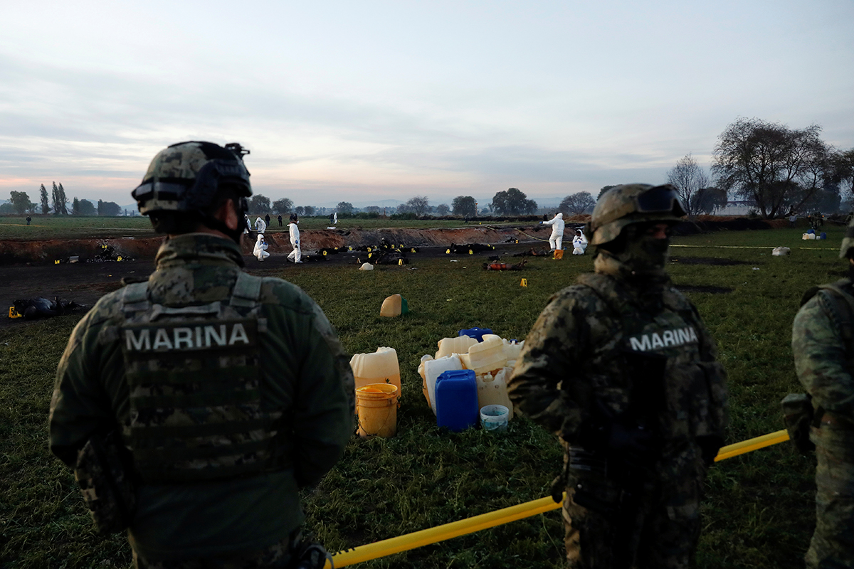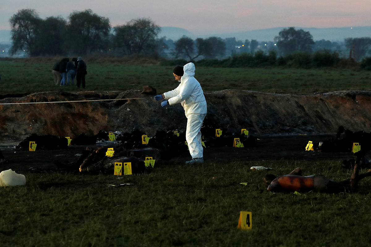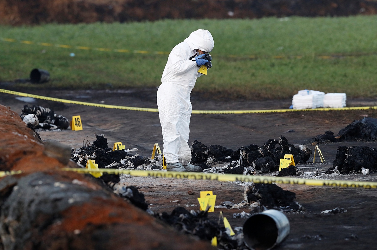 Personal especializado de Petróleos Mexicanos en coordinación con autoridades federales y locales atienden el incendio y apoyan a la población que resultó afectada por este suceso ocasionado por una toma clandestina en Tlahuelilpan, Hidalgo.