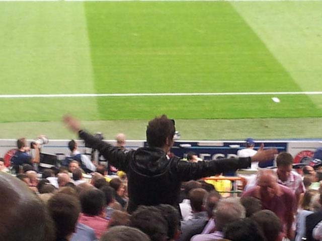 Como gente decente llegó y ocupó su lugar, en donde estuvo relativamente tranquilo hasta que los citizens abrieron el marcador. El gol anotado por Dzeko fue suficiente para que el músico se pusiera de pie, corriera escaleras abajo y terminara besando a un agente de seguridad.