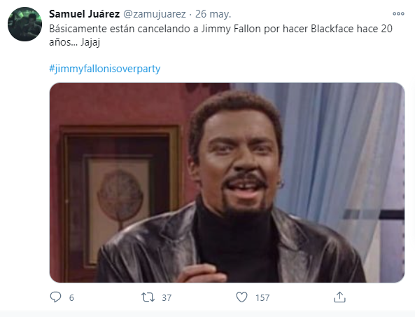 En el video que comenzó a circular en redes sociales, se ve al reconocido presentador haciendo una parodia del comediante Chris Rock. Sin embargo, el clip tenía casi 20 años de haberse filmado en una emisión de Saturday Night Live. Desde luego, el hashtag #JimmyFallonIsOverParty se hizo tendencia aunque no duró mucho tiempo.
