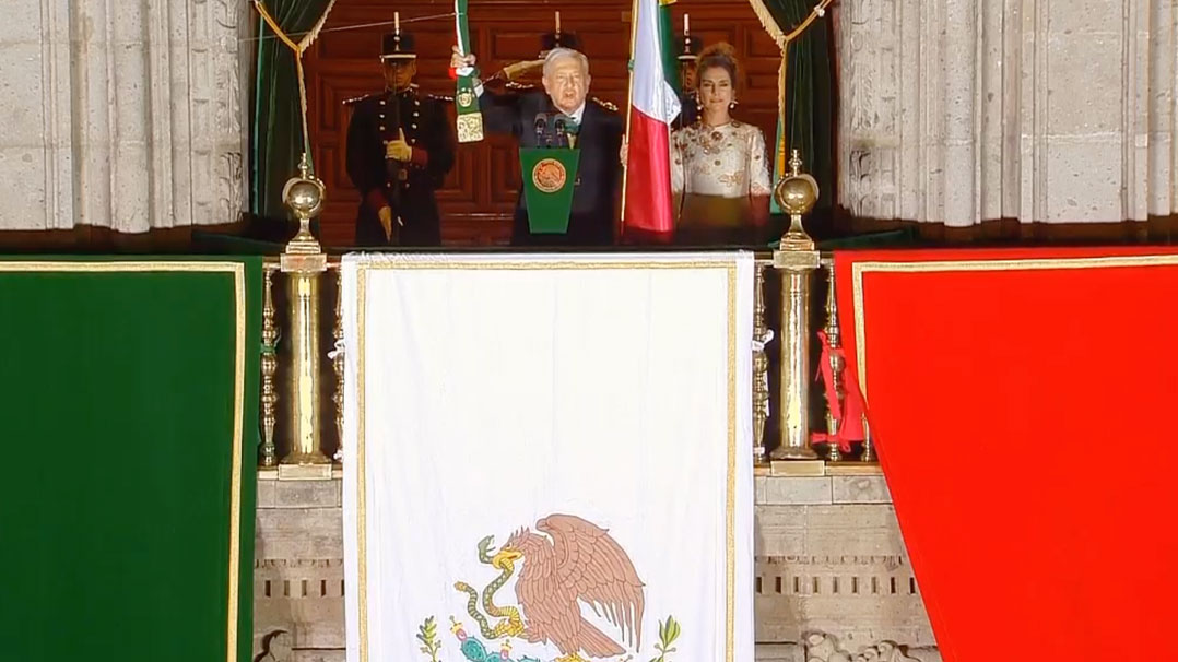 Un sepulcral silencio, rodeó la víspera del tradicional Grito de Independencia, en el que cada paso que se daba al interior de Palacio Nacional se podía escuchar en la cadena nacional. Tras guardar un minuto de silencio en memoria de las víctimas que han perdido la vida por la Pandemia del COVID-19, el Presidente Andrés Manuel López Obrador acompañado de la (no) Primera Dama, Beatriz Gutierrez Müller, recibió la bandera de la escolta (integrada por dos mujeres) y posteriormente se dirigió al balcón principal de la sede del ejecutivo, para celebrar la ceremonia del Grito de Independencia, frente a un Zócalo vacío a simple vista, pero que al mismo tiempo estuvo lleno de simbolismos.