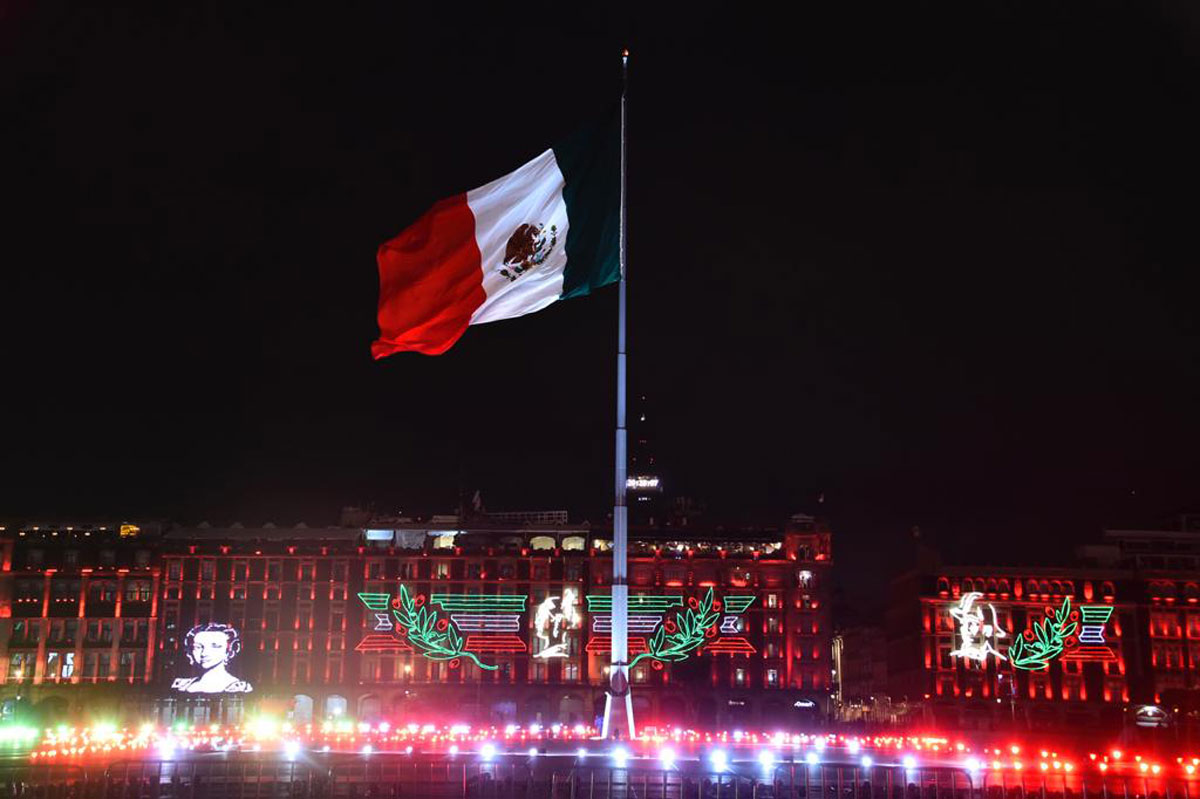 La plancha del del Zócalo se ha convertido en un lienzo, donde yace un mapa de la república mexicana, alumbrado por los colores patrios, acompañado por una representación de la antorcha del Pípila, como un símbolo de unión y esperanza para todos los mexicanos: “La llama de la esperanza”.