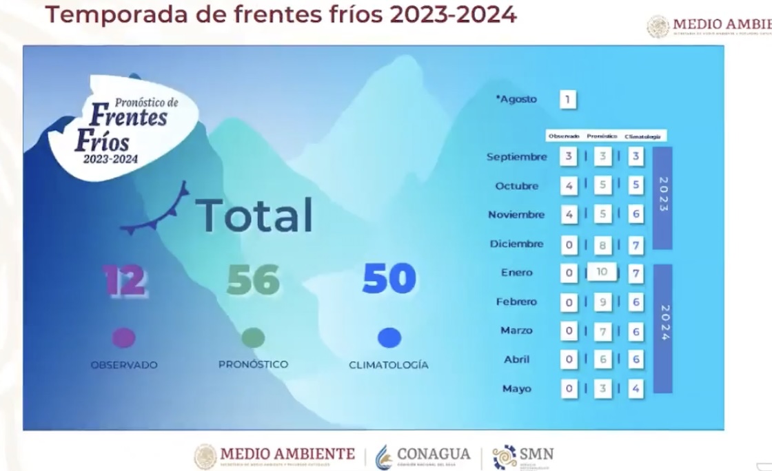 Ahora bien, por lo pronto, de los 56 frentes fríos pronosticados para la temporada, ya pasamos 12.