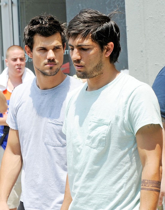 Shia LaBeouf con su respectivo compañero en la filmación de Transformers 3.