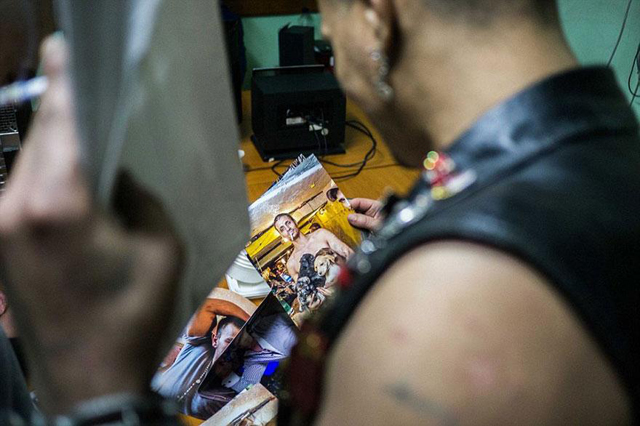 A Lee le gusta ponerse gruesas cadenas, candados, insignias, medallas y trozos de tela. En algunas fotos aparece junto a un chico, su nombre es Nico, quien tiene VIH y necesita urgentemente tratamiento anti-viral, pero el hospital estatal no lo puede tratar mientras siga inhalando pintura.