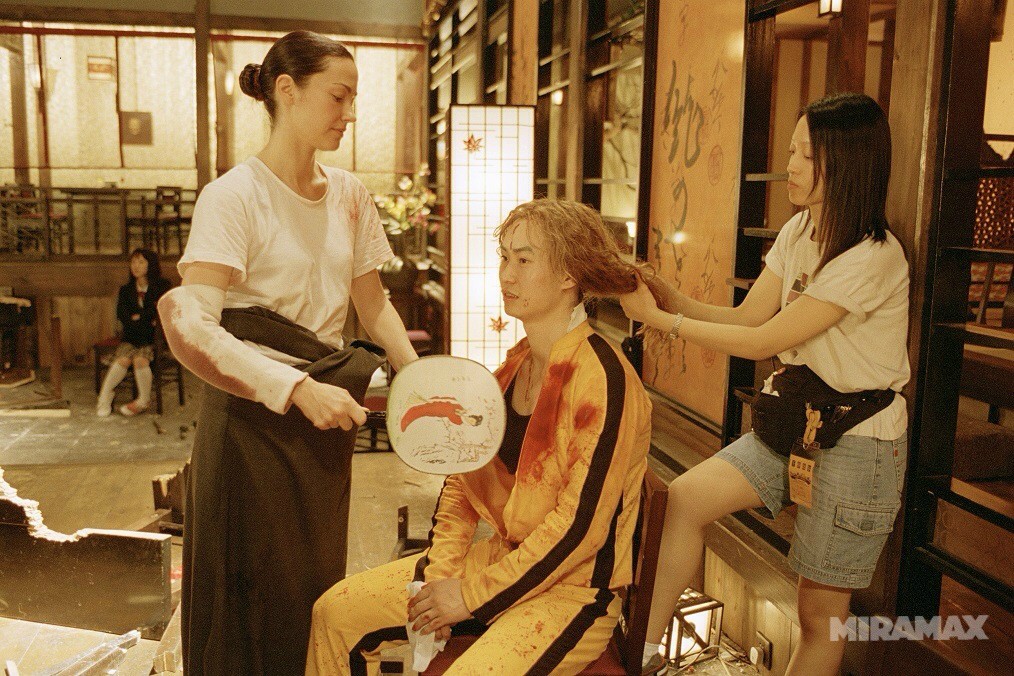 Ahora su distribuidora Miramax ha lanzado diez imágenes de su filmación en Hong Kong en 2002. En éstas imágenes podemos ver a Lucy Liu abrazarse con Uma Thurman mientras lleva el cerebro de fuera; a dos carpinteros añadirle a Gogo Yubari la tabla con el clavo que daría fin a su vida; o simplemente a Tarantino platicar con Thurman durante un corto descanso de filmación.