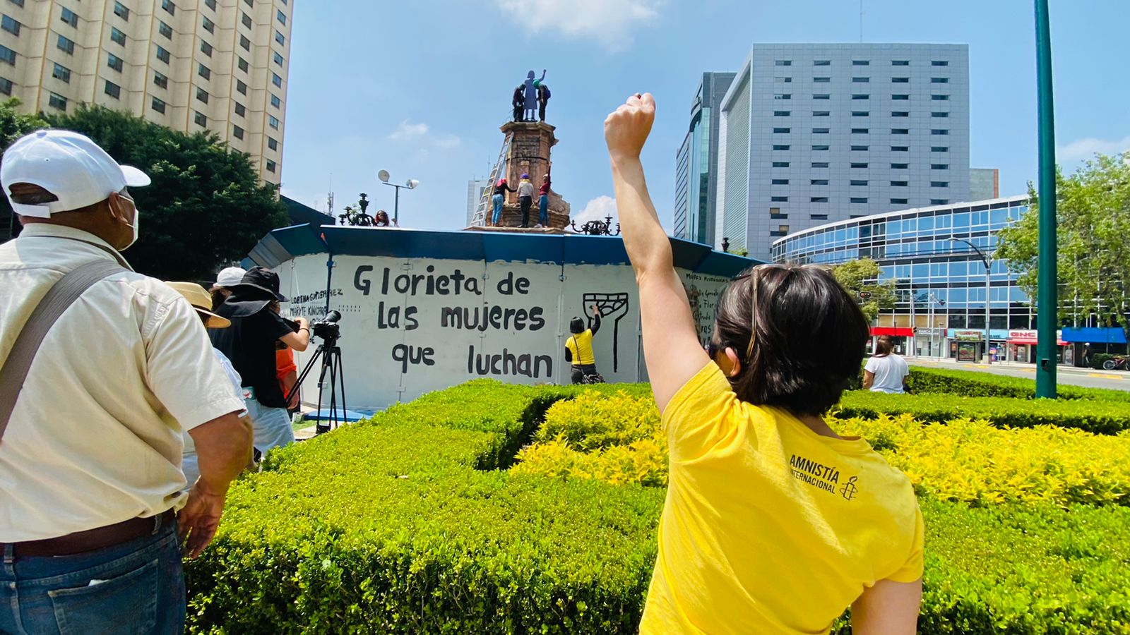 También escribieron en la parte central “Glorieta de las mujeres que luchan”, para renombrar dicho punto de la ciudad. “…este lugar es desde ahora la Glorieta de las Mujeres que Luchan y estará dedicada a aquellas que en todo el país han enfrentado las violencias, la represión y la revictimización por luchar contra las injusticias”, fue el mensaje que compartieron en sus redes.