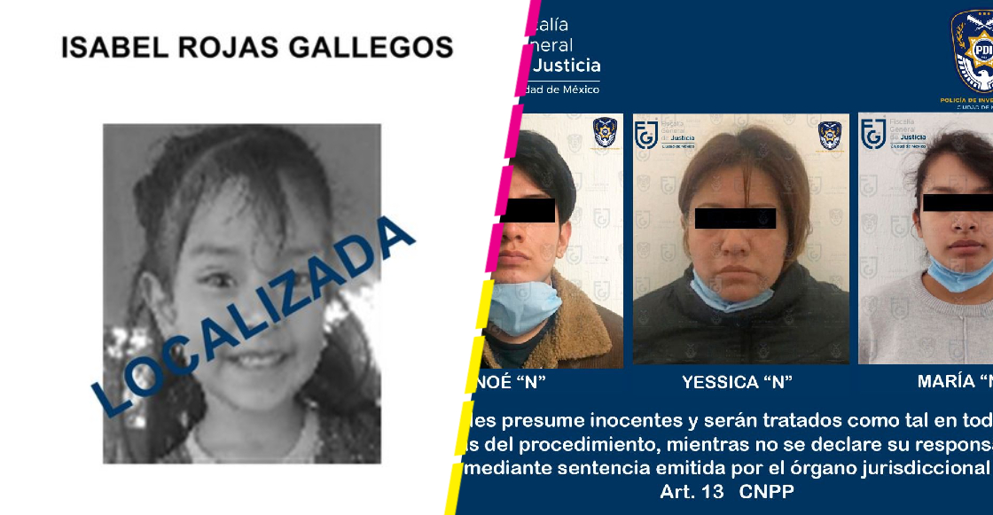 La Fiscalía confirmó que dichas personas fueron detenidas por su posible participación en el feminicidio de Isabel. Nos referimos a María ” N”, Noé “N” y Yessica “N”… todos familiares de la niña, de hecho, se trata de su madre, padrastro y la madre de éste último.