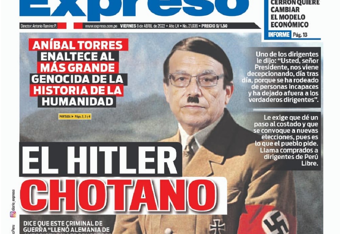 En medio de las protestas que se registran en Perú, exigiendo la renuncia del presidente Pedro Castillo, salió el primer ministro a exaltar la figura de Adolfo Hitler… no mmr.