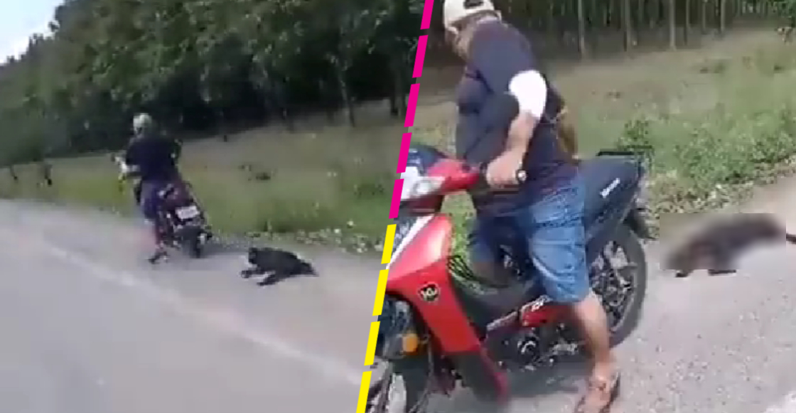 El mismo hombre que le reclama le dice que si el perro no puede continuar caminando, debería subirlo a la moto en lugar de arrastrarlo con ella. Mientras el sujeto en cuestión intenta jalar nuevamente a su mascota para que se levante, le cuestiona que si a él le gustaría ser llevado así en plena carretera.