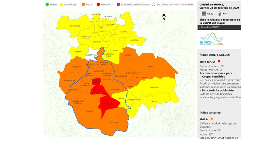 Esperamos una calidad del aire muy mala con la esperanza de que mañana si haya condiciones para que los contaminantes se disipen.
