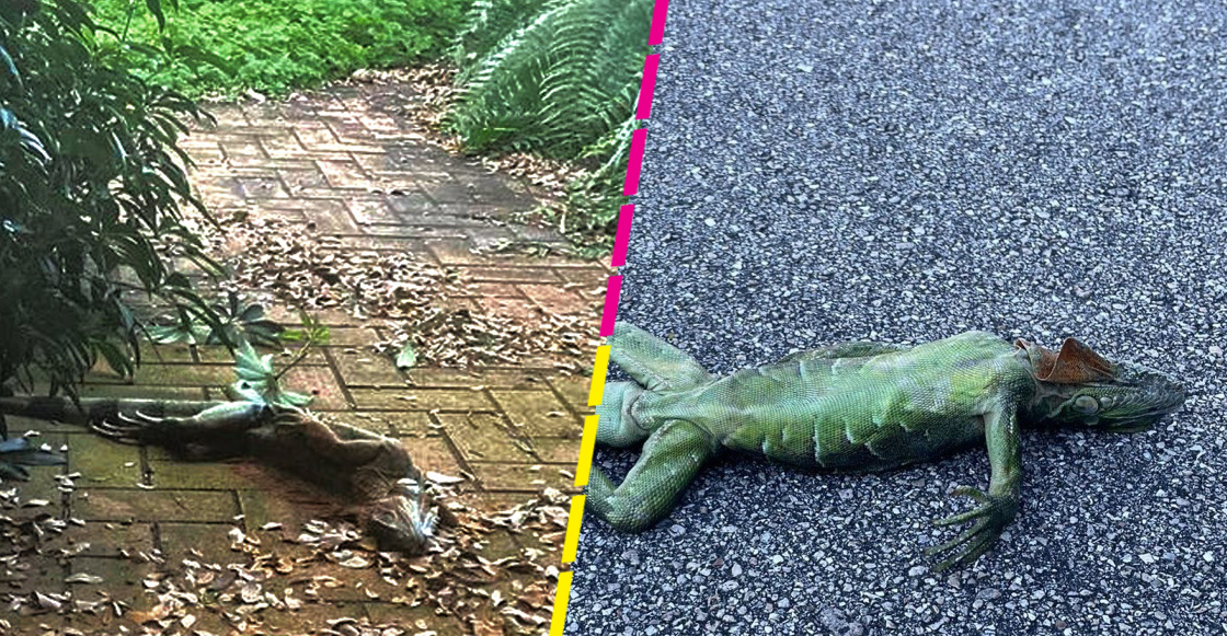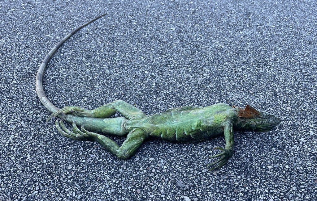 El asunto es que como son temperaturas que no son muy comunes en esta zona, muchos animales sufrieron las consecuencias, como las iguanas.
