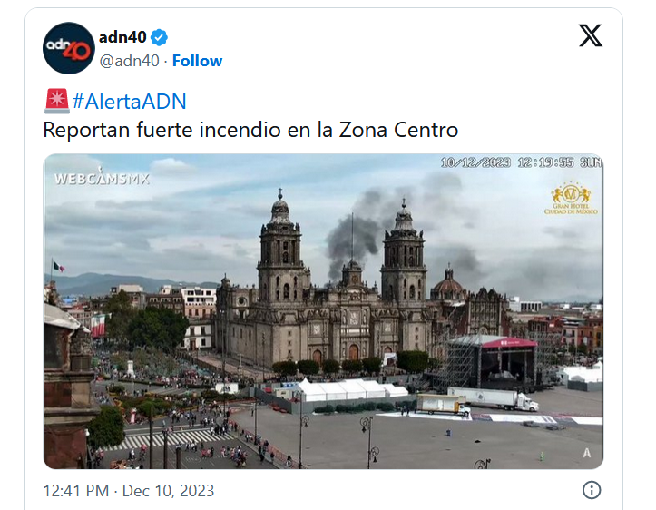 Servicios de emergencia atienden incendio en el Centro Histórico de CDMX