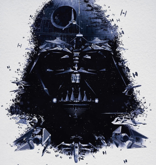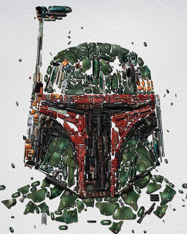 La exposición contará con trajes, modelos y obras de arte de las películas de Star Wars, pero lo que nos ha llamado la atención son esta serie de retratos en mosaico de los diferentes personajes de la saga conformadas de pequeñas ilustraciones.