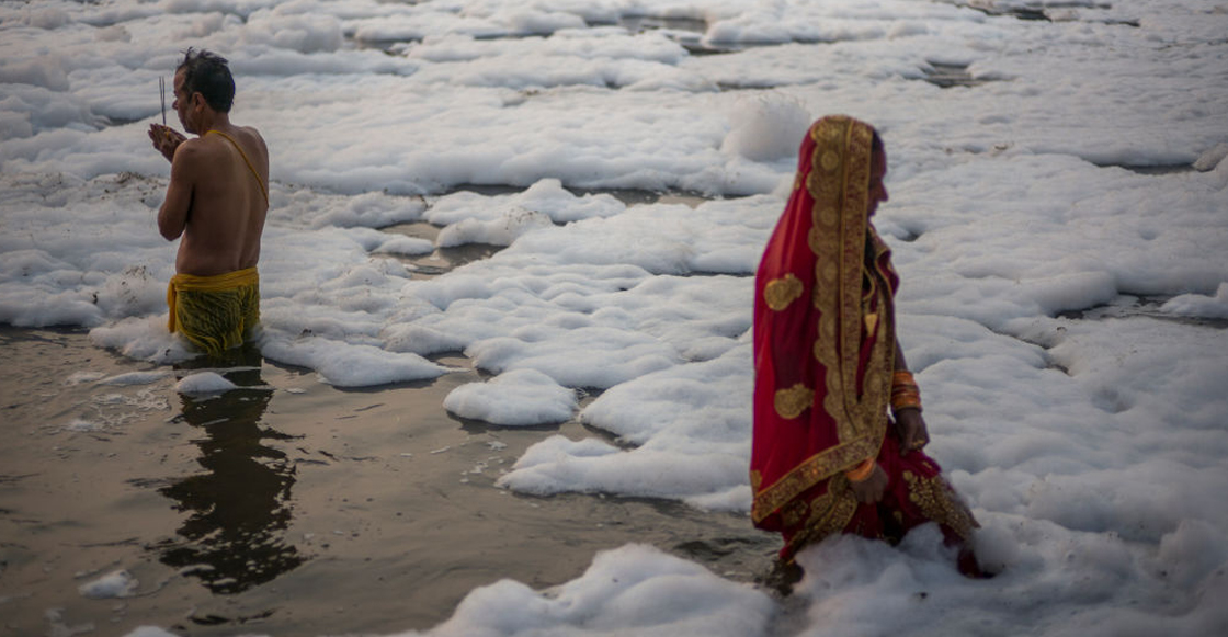 Sin embargo, a pesar del nivel de contaminación, decenas de fieles se metieron al río a bañarse y las imágenes ya le dieron vuelta a todo el mundo por lo impresionante de la espuma flotando sobre el agua.