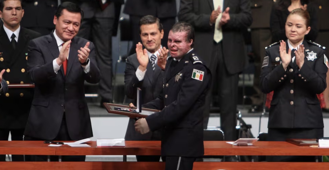 Por lo anterior, el suboficial de la PF fue homenajeado por el Estado. Una imagen que quedó para el recuerdo fue él recibiendo un recibiendo un reconocimiento al mérito policial de manos del entonces presidente, Enrique Peña Nieto.