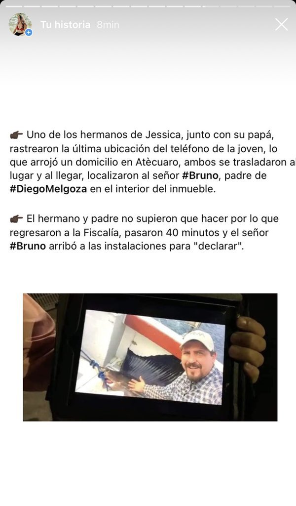 Varios posteos hechos hace unos días, indican que el hermano y el papá de Jessica rastrearon la ubicación del teléfono de la chica y ésta los llevó a un domicilio. Ahí fueron recibidos por Bruno, el padre del ahora sospechoso, quien fue a declarar ante las autoridades sobre la desaparición de Jessica, quien era maestra.