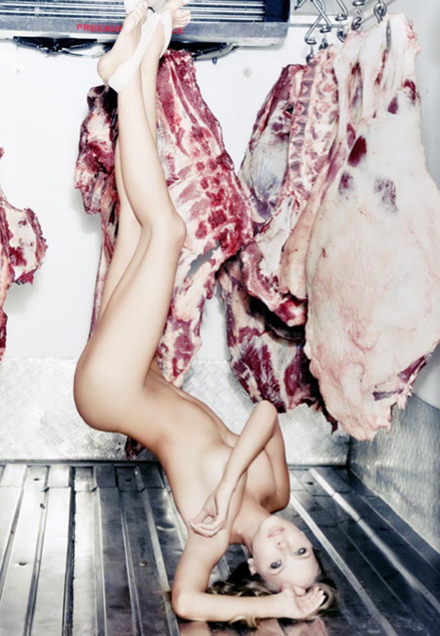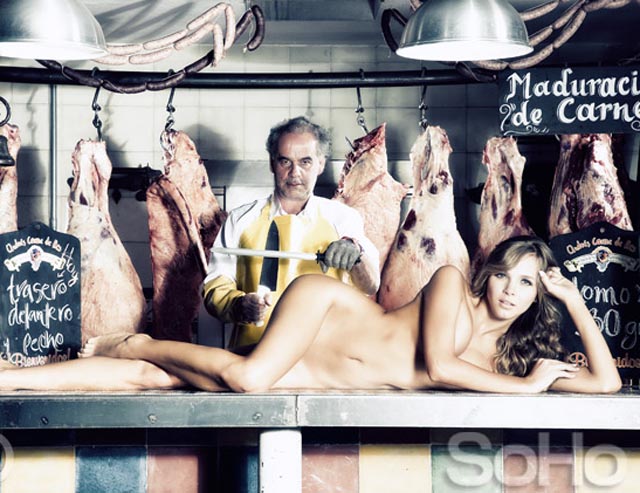 ¿De qué se les antoja un taquito? ¿De pechuga, de pierna, de muslo? Para que vayan haciendo hambre, les traemos estas fotografías de la sesión en la que Elizabeth Loaiza, Miss Mundo Colombia 2006 posó desnuda para la revista ‘SoHo’, nada más ni nada menos que en una carnicería.