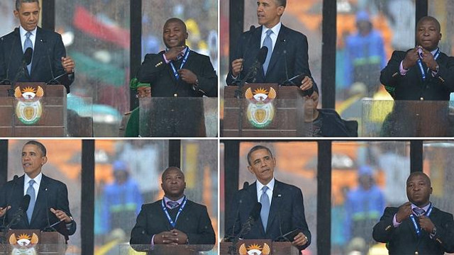 Hey, ¿recuerdan al intérprete para sordos que en el memorial de Mandela sirvió como traductor de todos los que tomaban la palabra, excepto que no decía absolutamente nada, sino que sólo movía las manos como loco sin que nadie, excepto los sordos, se diera cuenta?, ¿lo recuerdan? Bueno, pues ya explicó (?) su conducta: tiene esquizofrenia… y ustedes burlándose, insensibles.