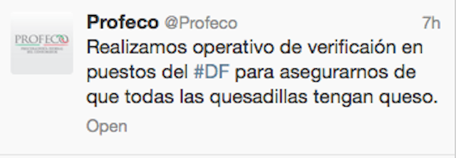 A muchos no nos hizo gracia el tuit porque, bueno, somos de los que pedimos que le pongan dos pesos más de queso a nuestras quesadillas y pues ya nos habíamos emocionado. #Urgelegislar.