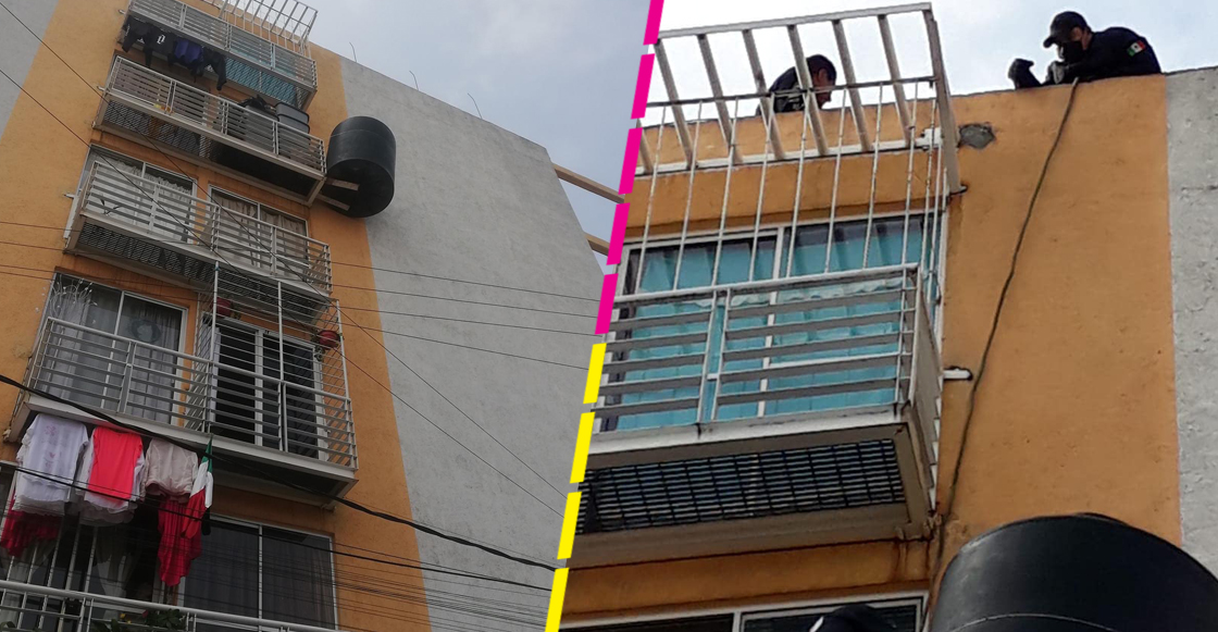 Una de las vecinas de la unidad aseguró que el tinaco de la doñita está vacío y lo tienen en el balcón porque no cabe dentro de su casa. La cosa es que aún así el objeto sigue siendo muy pesado y podría causarle un daño enorme si le llegara a caer a alguien desde la altura en la que se encuentra.