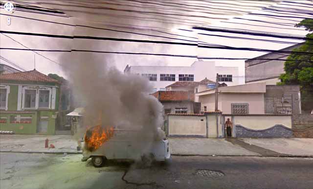 Aunque estas fotos son modificadas antes de su publicación final, difuminando caras y números de placas, se han colado escenas de la vida rutinaria un tanto singulares.