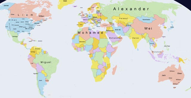 En varias ocasiones hemos hecho notas sobre los apellidos más comunes de distintas partes del mundo, pues bien, ahora encontramos algo similar pero con nombres masculinos. Este mapa fue subido a Reddit por el usuario xyuksr, y la verdad está bastante interesante checar varios detalles que se derivan de ellos, como descubrir que la mayoría tienen un contexto religioso.