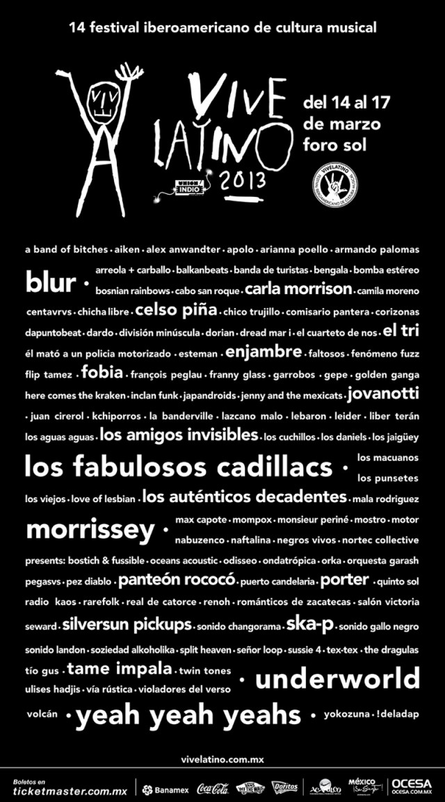 Tras 14 ediciones y cientos de reconocidos artistas, el Vive Latino se ha convertido en uno de los festivales más importantes de toda América Latina gracias a la diversidad de estilos que presenta cada año y la presencia, cada vez más notoria, de banda internacionales de primer nivel (The National, Chemical Brothers, Kasabian, Underworld, Arcade Fire, NIN y más).