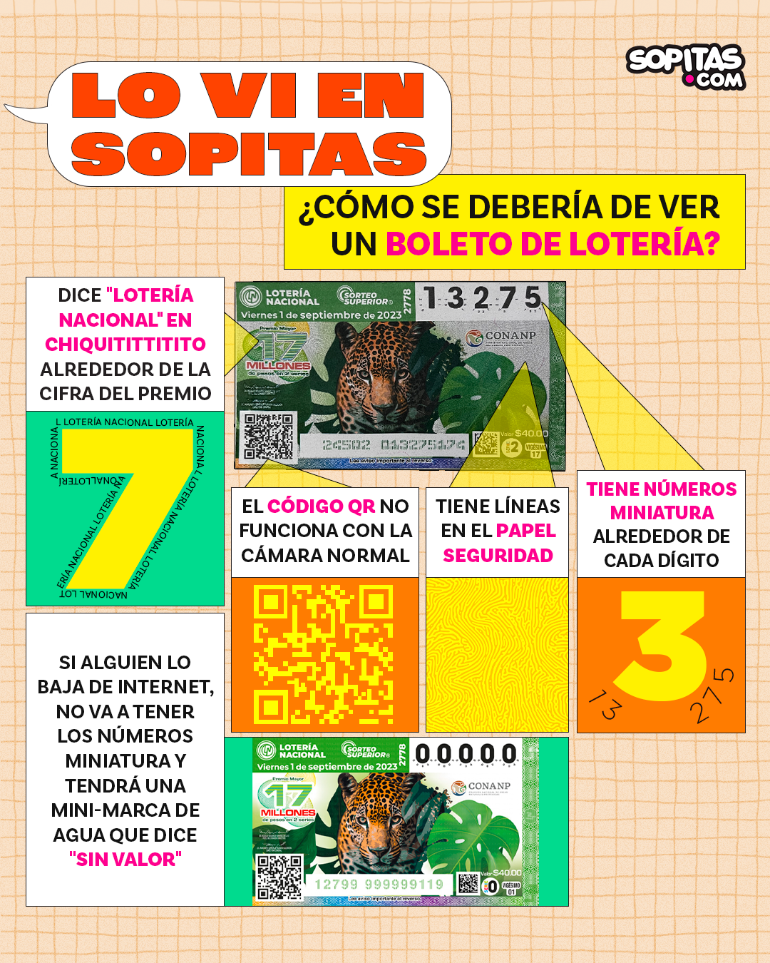 Entonces, acá les dejamos unos tips para que puedan revisar si un cachito de Lotería es falso. Además de los detalles miniatura en el boleto, pueden —como lo hizo Mayra en su testimonio— evitar esta estafa escaneando el Código QR con su celular.