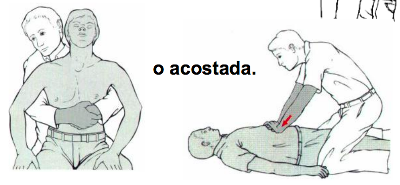 Si la persona está inconsciente o quien aplica la maniobra no tiene fuerza suficiente para sostener a la persona, se puede aplicar sentada o acostada.