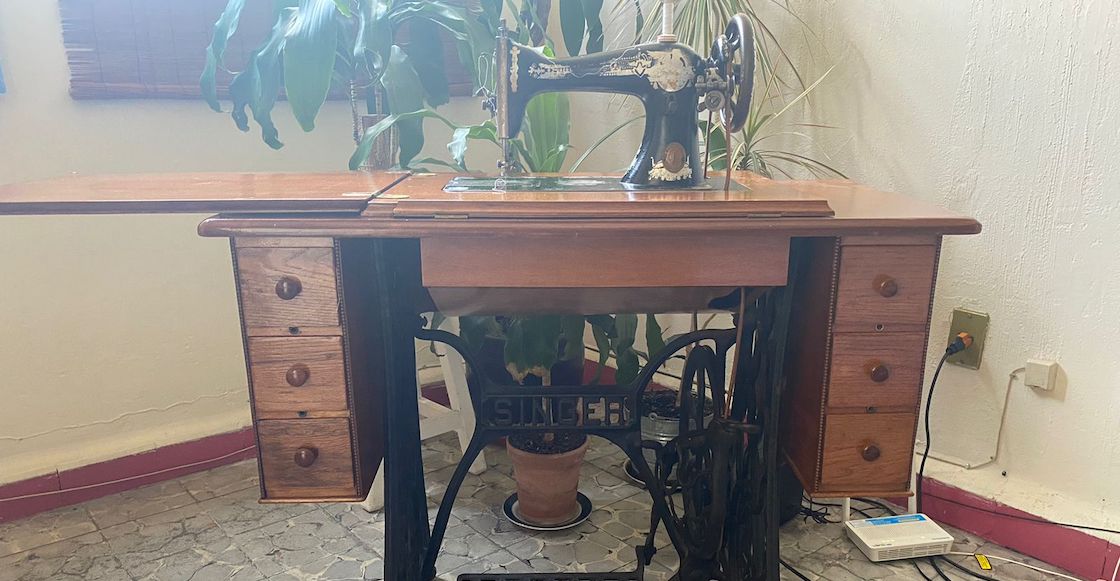 Cada dos años la llevo a su mantenimiento al Mercado de la Portales de la Ciudad de México con un señor —de los pocos que quedan— que es experto en reparar ese tipo de muebles. La máquina de coser Singer pesa muchísimo, pero tiene casi cien años de hacer disfraces para los bailables escolares de la chamaquiza, de zurcir ropa, de dobladillar cortinas y manteles; así como de todos los básicos de costura por más de tres generaciones en la familia.