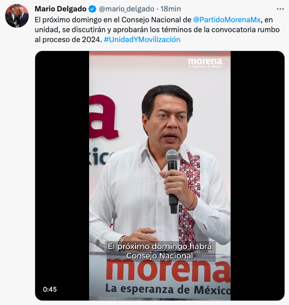 ¿Qué va a haber o qué? El líder nacional de Morena, Mario Delgado, explicó que el próximo domingo se reunirá el Consejo Nacional de Morena para discutir y aprobar los términos de la convocatoria rumbo al proceso electoral del 2024.