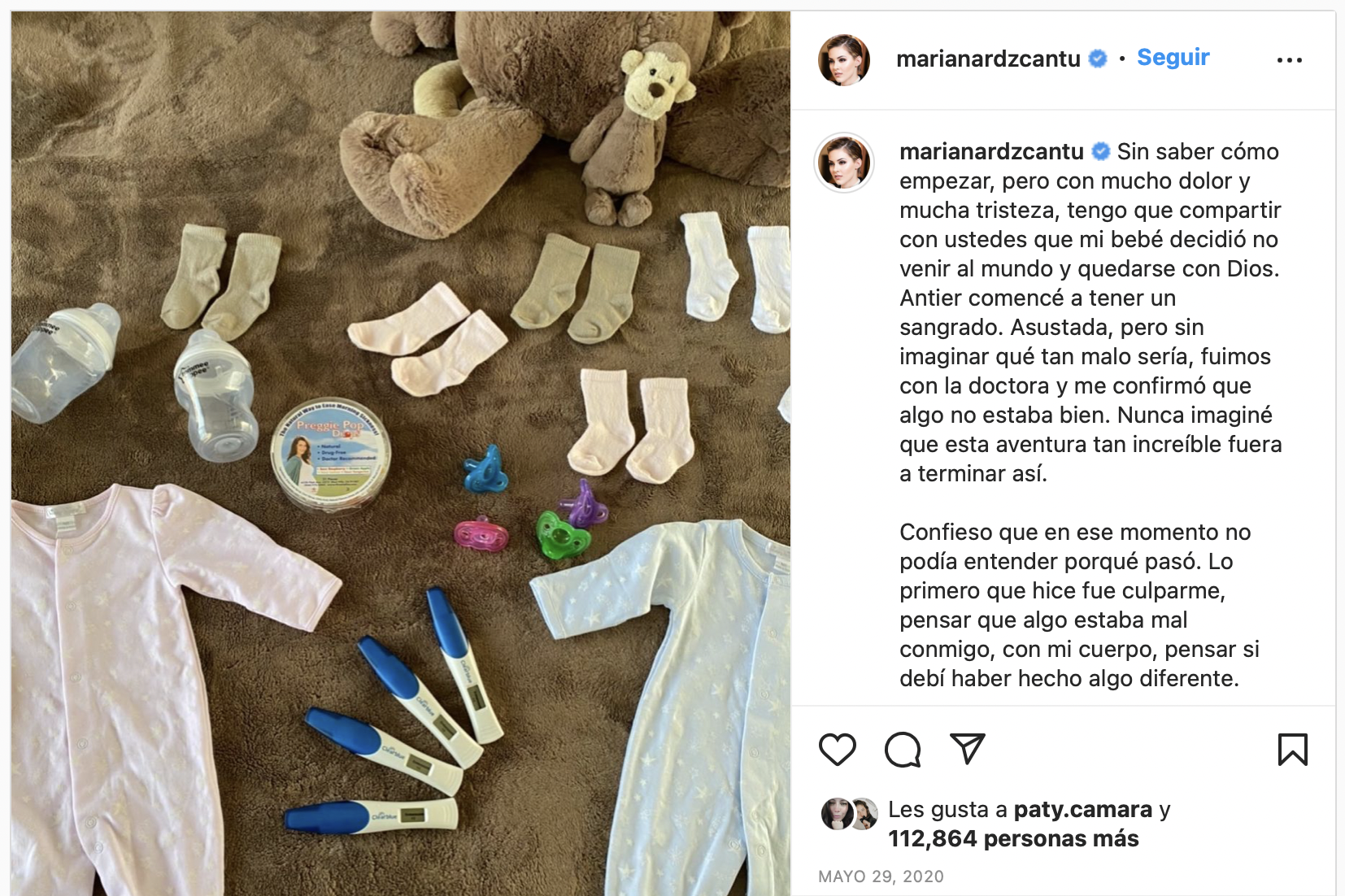 Unas semanas después, Mariana contó una noticia bastante triste. “Sin saber cómo empezar, pero con mucho dolor y mucha tristeza, tengo que compartir con ustedes que mi bebé decidió no venir al mundo y quedarse con Dios”, escribió aquella vez en un emotivo post.