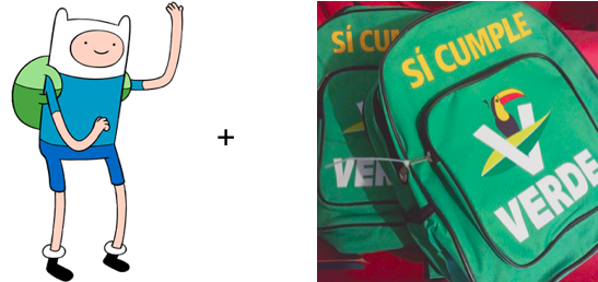 Recuerdo que esta revelación llegó a mí un día que caminando en la calle encontré una estampa de Finn de Hora de Aventura pero, que en vez de su usual mochila verde, ahora portaba una mítica/infame del Partido Verde Ecologista. Por falta de pericia no se me ocurrió sacarle foto y ahora sólo vive en mi memoria.
