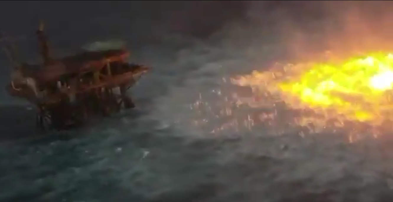 #Pemex informa que se registró una fuga de gas en un ducto submarino con presencia de fuego en el mar, a 150 metros de la plataforma satélite KU-C, perteneciente al Activo de Producción Ku-Maloob-Zaap. El fuego se extinguió a las 10:45 am.https://t.co/EoNsfI4Pxv pic.twitter.com/SsenwknnVO