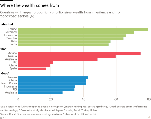 Según el economista Ruchir Sharma, creador del estudio, nuestro país encabeza la lista de billonarios “malos”.