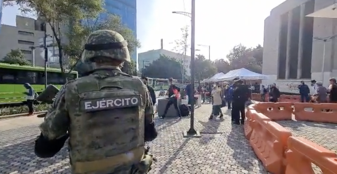 De hecho, hasta Claudia Sheinbaum les agradeció su presencia con un bello mensaje en redes sociales. Acá abajo podemos ver a un miembro de las Fuerzas Armadas, con rifle en mano, en las puertas de Metro Balderas.