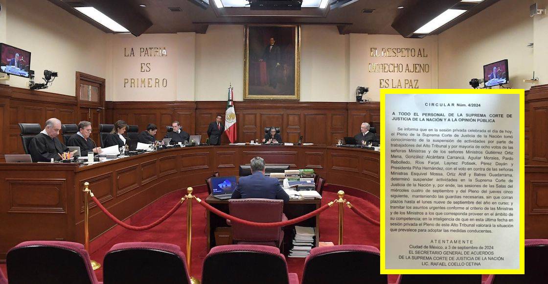 “Aquí la histórica circular 4/2024 en la que el Pleno de la Suprema Corte de Justicia avisa a los trabajadores que, por mayoría de 8 votos a 3, se ha determinado suspender labores en el máximo tribunal. Un hecho inédito“, escribió el periodista en su cuenta de X.