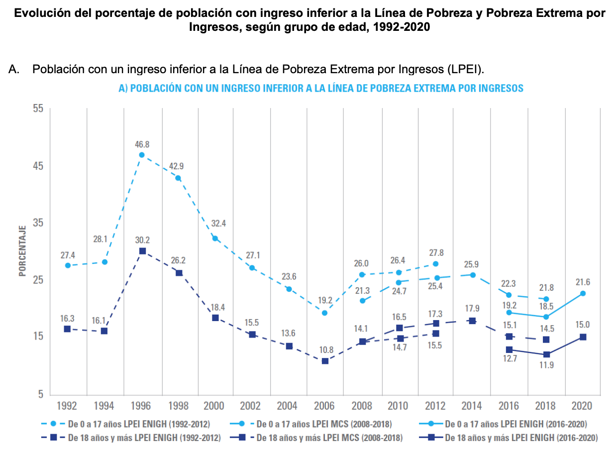 Cifras extremadamente preocupantes. Resulta que en México, el 52.5% de las niñas, niños y adolescentes viven en pobreza: 6 de cada 10 contaban con un ingreso inferior a la Línea de Pobreza por Ingresos.