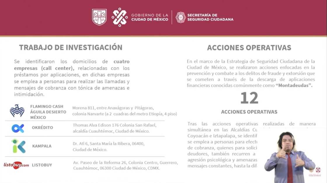 Por ACÁ les contamos que el 17 de agosto la Policía y Fiscalía chilangas hicieron un operativo simultáneo en cuatro colonias de CDMX contra cuatro empresas de montadeudas —Flamingo Cash, Okrédito, Kampala y ListoBuy.