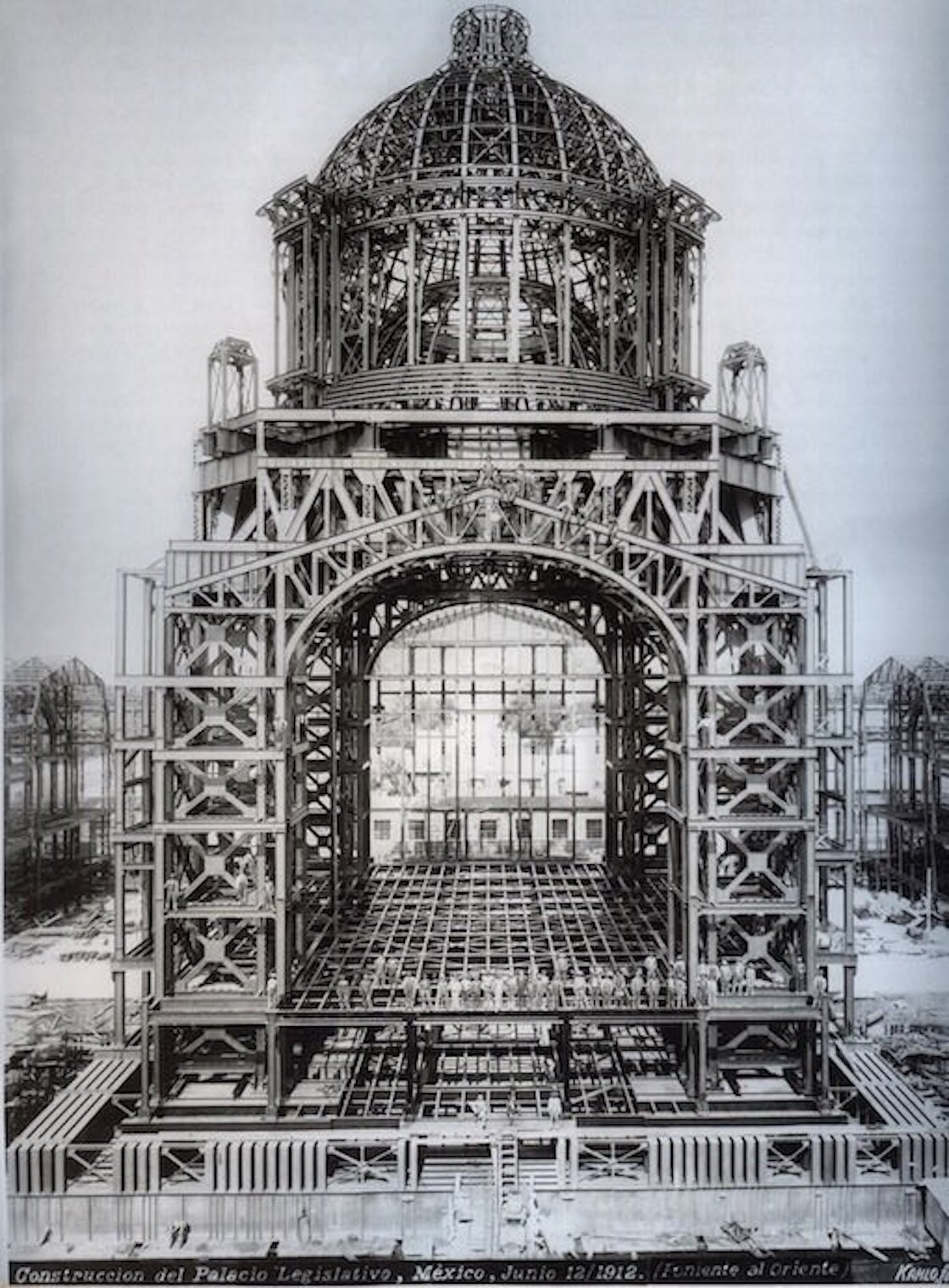 Para empezar, hay que hablar de por qué se decidió construir. Sí, de acuerdo con el libro “El sueño inconcluso de Émile Bénard y su Palacio Legislativo, hoy Monumento a la Revolución”, de Javier Pérez Siller y Martha Bénard Calva, a inicios del siglo XX, durante el gobierno de Porfirio Díaz, comenzaron a construirse varias obras para descentralizar los tres poderes y las distintas secretarías que desde la Independencia estaban en Palacio Nacional.
