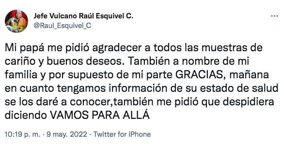 El Jefe Vulcano se volvió muy popular en Twitter con su cuenta de más de 184 mil seguidores, cuenta que su hija utilizó para informar a sus seguidores sobre su estado de salud desde que se enfermó.