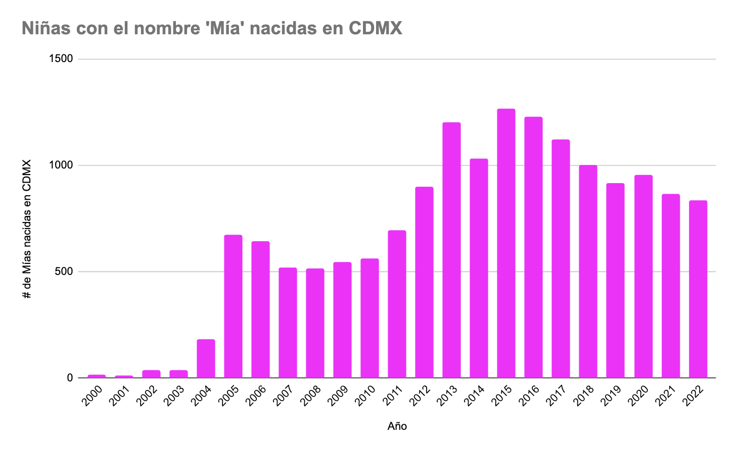 Cuando llegó 2004, con apenas unos meses al aire en televisión abierta, aparecieron 184 niñas con el nombre de Mía —un aumento ridículo de 1126% comparado con el año previo. Pero eso no quedaría ahí.