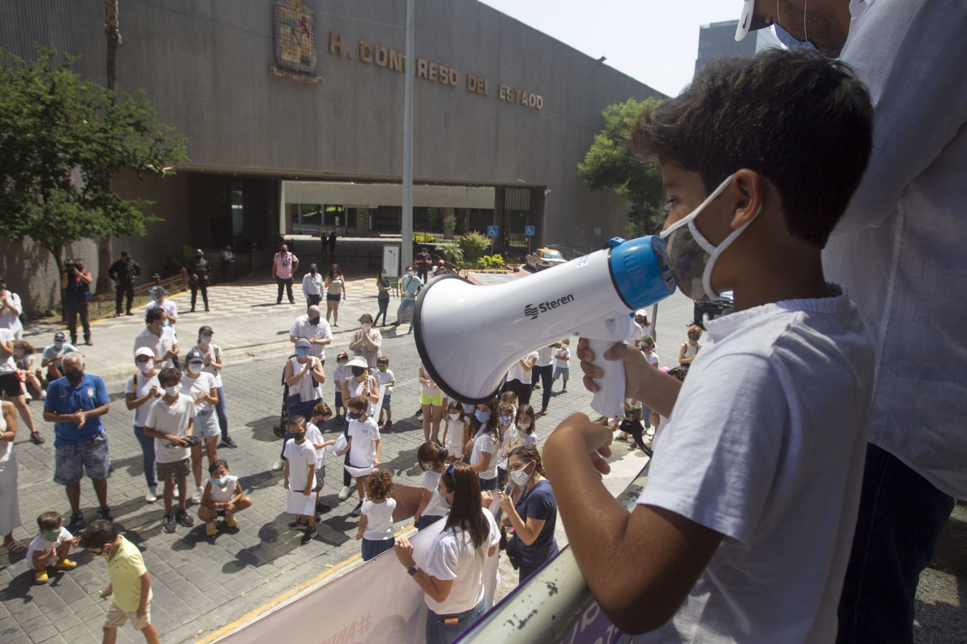 Padres, madres y niños exigen regreso a clases presenciales en Nuevo León