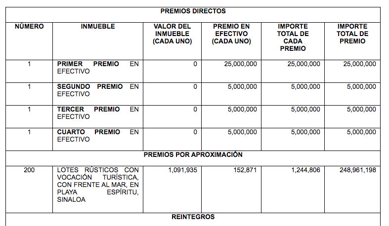 En ese sorteo había tres premios directos: una casa frente al mar en Sinaloa, y tres premios en efectivo de 5 millones cada uno. Esto significa que los premios se otorgarían a los billetes números resultantes de las tómbolas, 6 esferas con 10 bolas cada una.